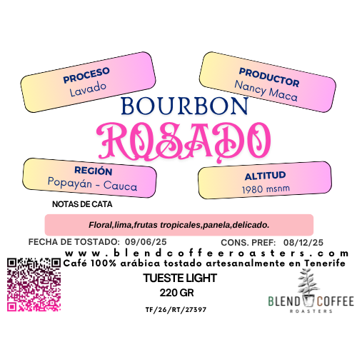Notas: Flor blanca,lima,frutos tropicales,panela,acidez media,delicado.
